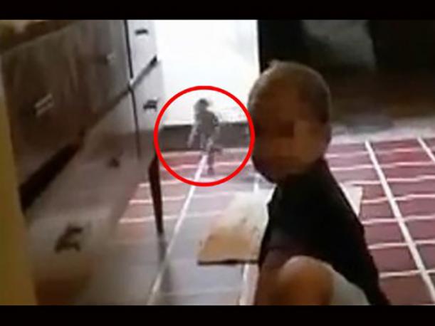 Una madre estaba grabando a su pequeño de dos años jugando en la cocina. Instantes después, una diminuta criatura corre repentinamente hacia la cocina. ¿Crees que sea real? Mira el video y comenta.