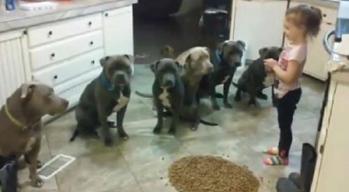 ¡Impresionante! Este es el video de una pequeña niña alimentando 6 pitbulls – VIDEO