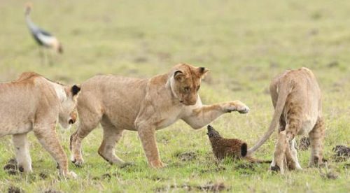Mira cómo un pequeño animal se enfrenta a 4 leonas hambrientas – VIDEO