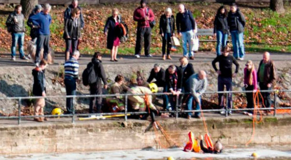 Al poco tiempo del suceso, rescatistas llegaron al lugar para auxiliar a la señora y a un hombre de 55 años que trato de ayudarla. La mascota no sufrió ningún daño, pero la dueña fue trasladada de urgencia porque su estado era crítico, esto debido a las bajas temperaturas del río Avon.
