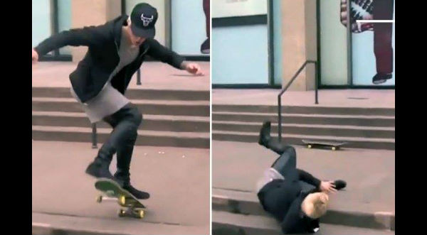 El polémico cantante Justin Bieber decidió bajar de su camioneta cuando paseaba por la calles de New York para realizar unas maniobras con su skate en una de las gradas del Madison Square Garden.