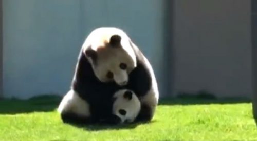 ¡Tanta ternura! Mamá panda juega a la ‘lucha libre’ con su hijo – VIDEO