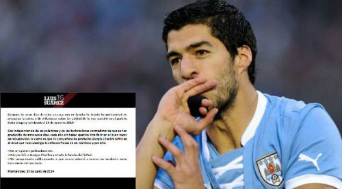 Luis Suárez envía carta de arrepentimiento a Chiellini