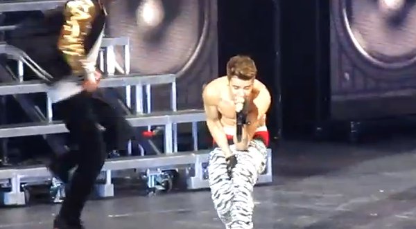 Bieber estaba con su torso desnudo y con ropa interior rojo. Sus fanáticas se sorprendieron, estallando la euforia cuando el cantante interpretaba ‘Baby’.